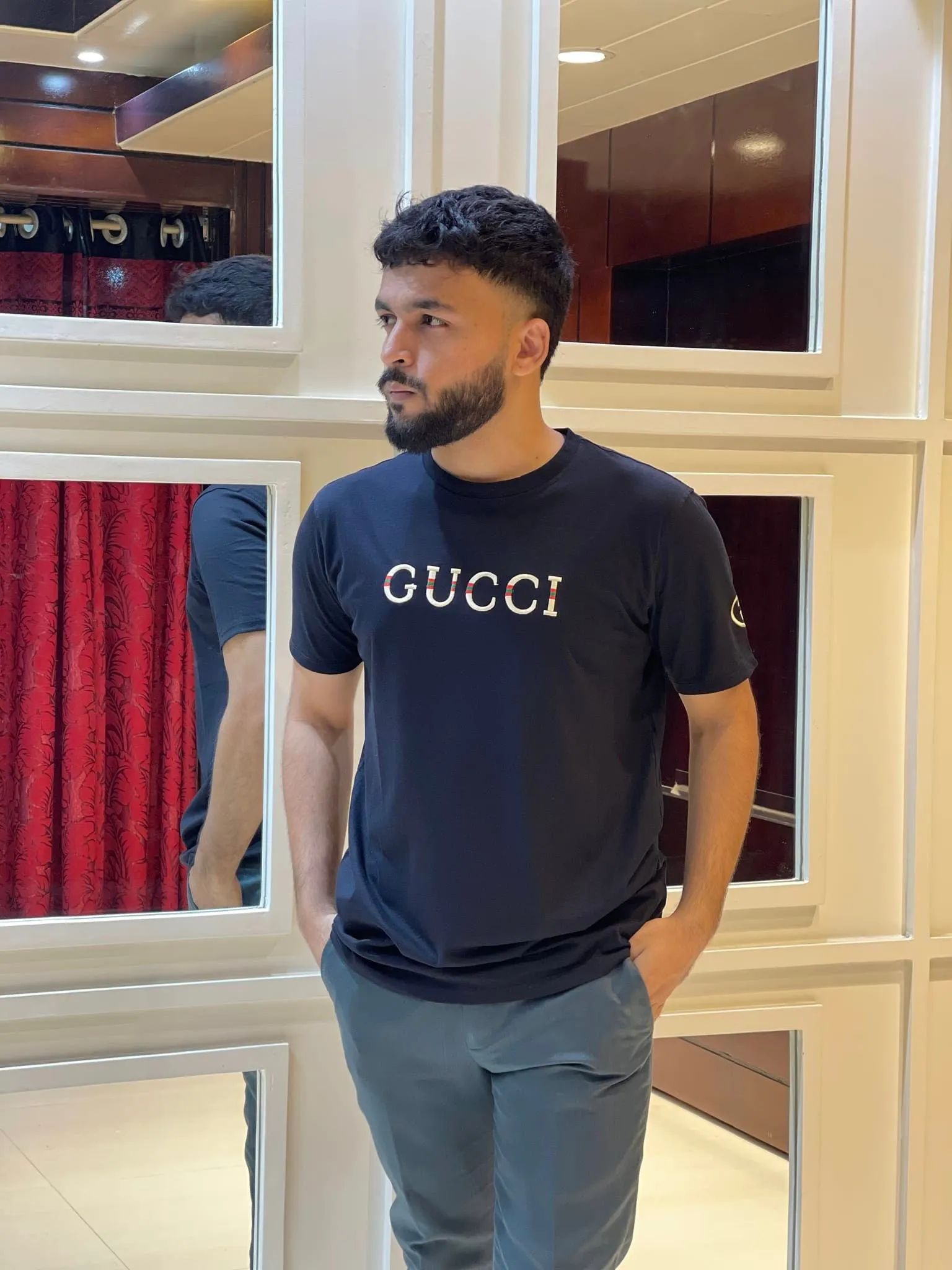 এই ব্ল্যাক Gucci টি-শার্টটি তৈরি করা হয়েছে 160 GSM, 100% অর্গানিক কটন দিয়ে। খাঁটি কটনের মসৃণ আরাম আপনার সারাদিনের যাত্রাকে করবে স্বাচ্ছন্দ্যময়। প্রিমিয়াম এমব্রয়ডারি যুক্ত ডিজাইন আপনার লুককে দেবে আলাদা রুচির ছোঁয়া। ক্যাজুয়াল থেকে শুরু করে স্মার্ট সব আউটফিটের জন্য উপযুক্ত।